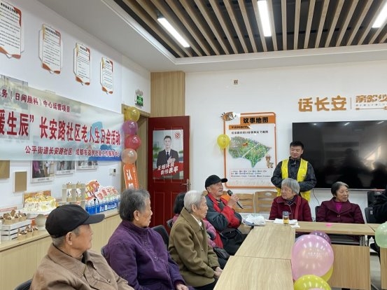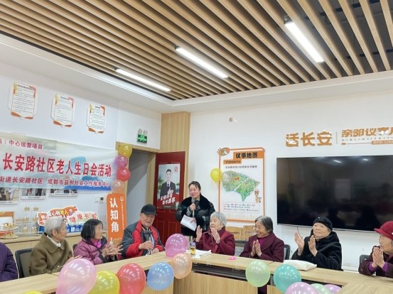 为进一步营造温馨、欢乐的氛围,增强老人们的归属感和幸福感,让每一位老人都能感受到集体的关爱与温暖。2025年12月2日,成都市温江区公平街道长安路社区在社区幸福荟全龄友好服务(日间照料)中心开展了一场主题为“岁月留香,情暖生辰”的老人生日会,为辖区近期过生日的老人集体庆生。